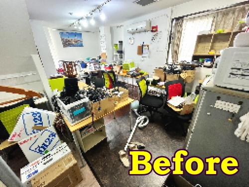 テナントの大家さんからのご依頼で、2Fと3Fの賃貸オフィスから、オフィス家具や書類など大量の残置物の片付け、撤去作業など、スタッフ3名2日間で実施させていただきました。
