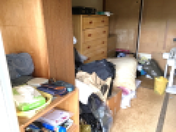 約30年間生活されていたお部屋で、大型冷蔵庫・洋ダンスなどの大型家具をはじめ、衣類や日用品がとても多く残っている状態でした。